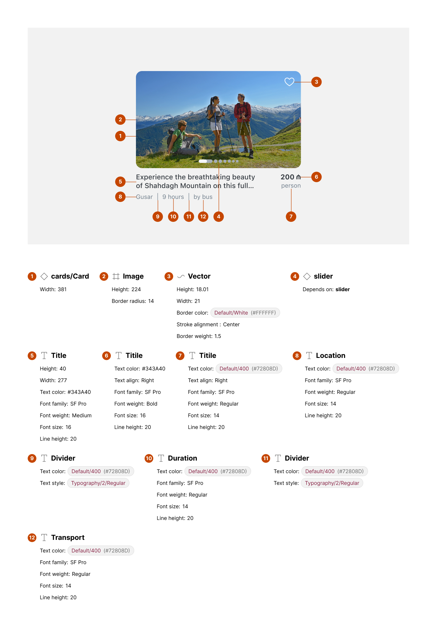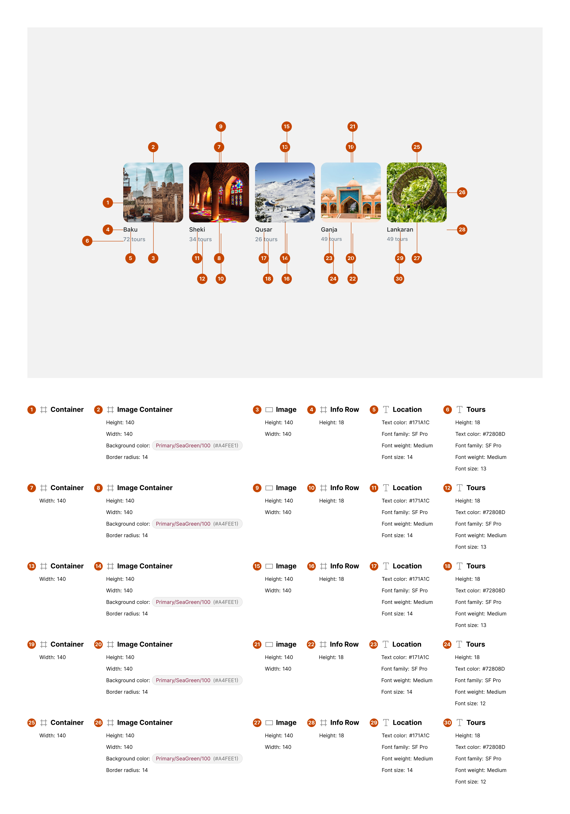 Cards are used to group related content and actions about a single subject. In this layout, they showcase destinations, hotels, tours, and promotions with visual emphasis on images, titles, and supporting metadata.